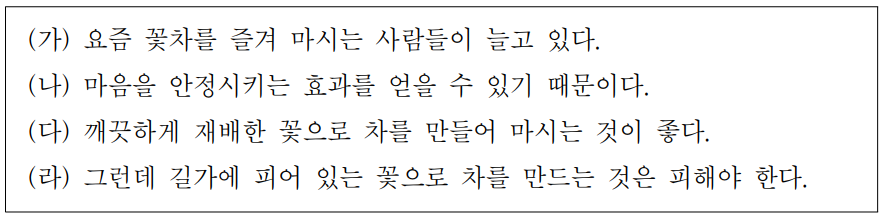 (라)그런데 길가에피어있는꽃으로차를만드는것은 피해야한다.