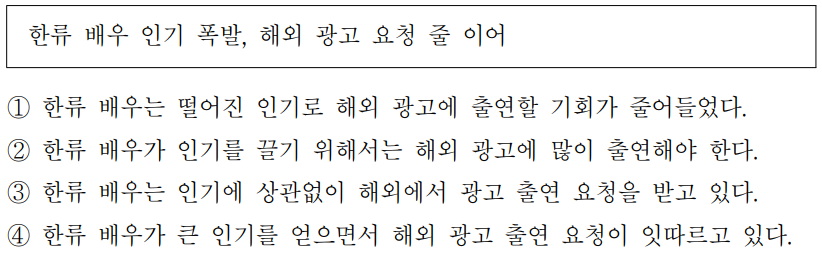 다음 글의 주제로 가장 알맞은것을 고르십시오.