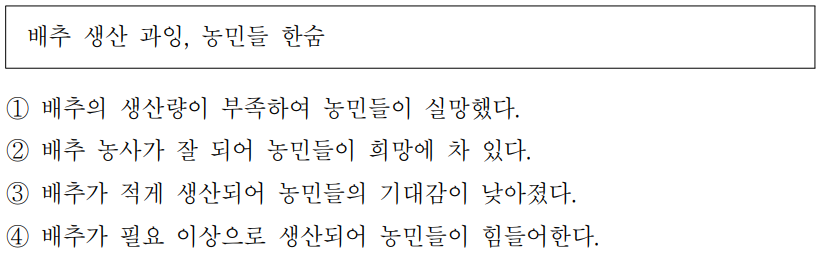 배추 생산 과잉,농민들 한숨※ [28~31]다음을 읽고 ( )에 들어갈내용으로 가장 알맞은것을 고르십시오.(각 2점)