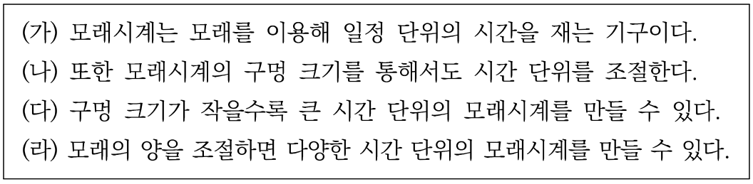 (라) 모래의 양을 조절하면 다양한시간단위의 모래시계를 만들수있다.