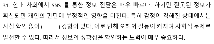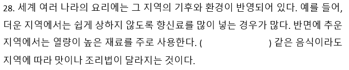 [28~31] ( ) 에 들어갈 말로 가장 알맞은 것을 고르십시오 . ( 각 2 점 )