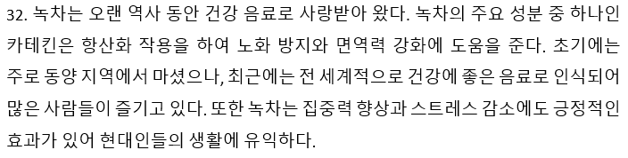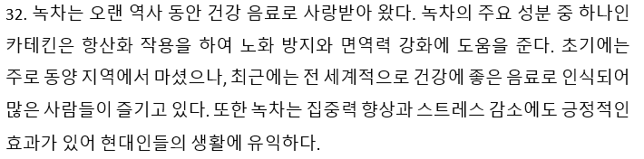[32~34] 다음을 읽고 글의 내용과 같은 것을 고르십시오 . ( 각 2 점 )