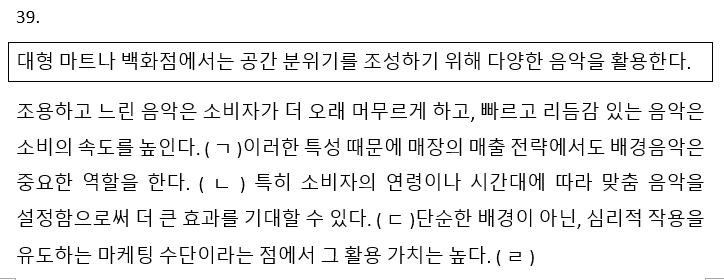 [39~41] 주어진 문장이 들어갈 곳으로 가장 알맞은 것을 고르십시오 . ( 각 2 점 )