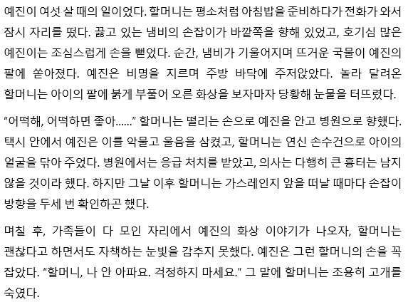 42. 밑줄 친 부분에 나타난 ' 할머니 ' 의 심정으로 가장 알맞은 것을 고르십시오 .