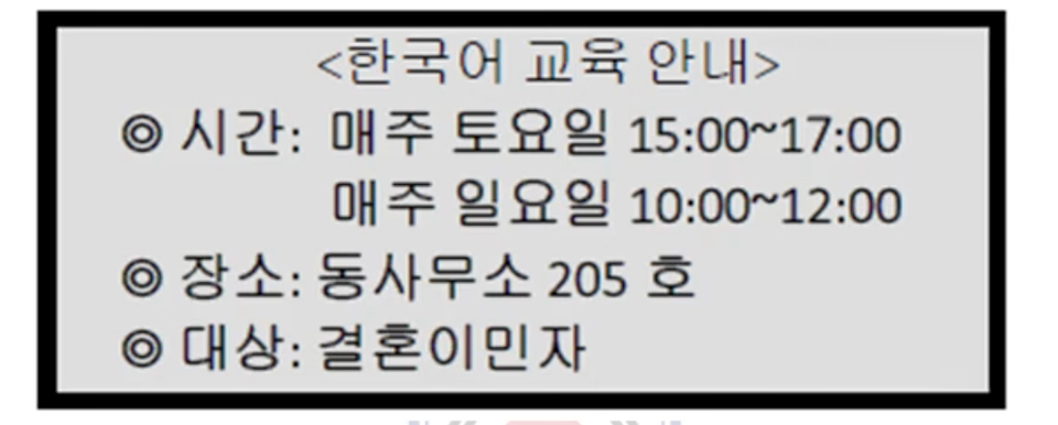다음안내문에대한설명으로맞는것은 무엇입니까? Câu nào là đúng về thông báo sau?