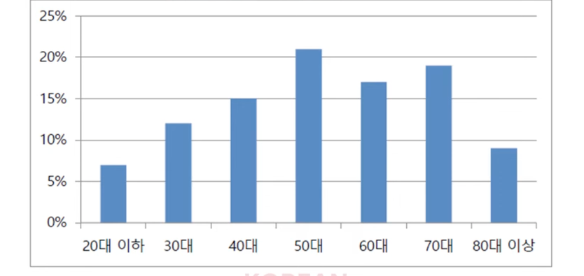 연령대별수면장애진료현황에대한표입니다. 맞는설명은 무엇입니까? Bảng này thể hiện tình trạng điều trị rối loạn giấc ngủ theo nhóm tuổi. Câu nào sau đây là đúng?