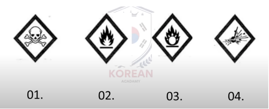 다음 설명에 맞는 표지는 무엇입니까? Biển báo nào đúng với lời giải thích dưới đây 매우 위험한독성물질입니다.