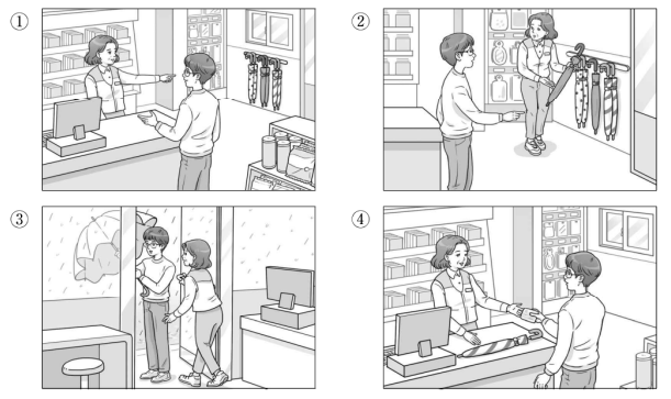 15. 다음을 듣고 가장 알맞은 그림을 고르십시오. Hãy nghe đoạn sau và chọn bức tranh phù hợp nhất. 남자: 저, 우산은 어디에있어요? 여자: 저기 창문밑에있습니다.
