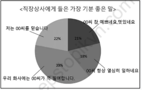 이글의내용과같은것은 무엇입니까? Câu giống với nội dung của đoạn văn này là câu nào? 모두가행복한직장을만드는방법은 어렵지않습니다. 작업장에 들어가면 상사나 동료에게 먼저 인사합니다. 그리고 윗사람과 아랫사람에게 모두 존댓말을 사용합니다. 반말은 듣는사람의기분을 나쁘게 할수있습니다. 또 다른사람에게 방해가되니 큰소리로 이야기하지맙시다.